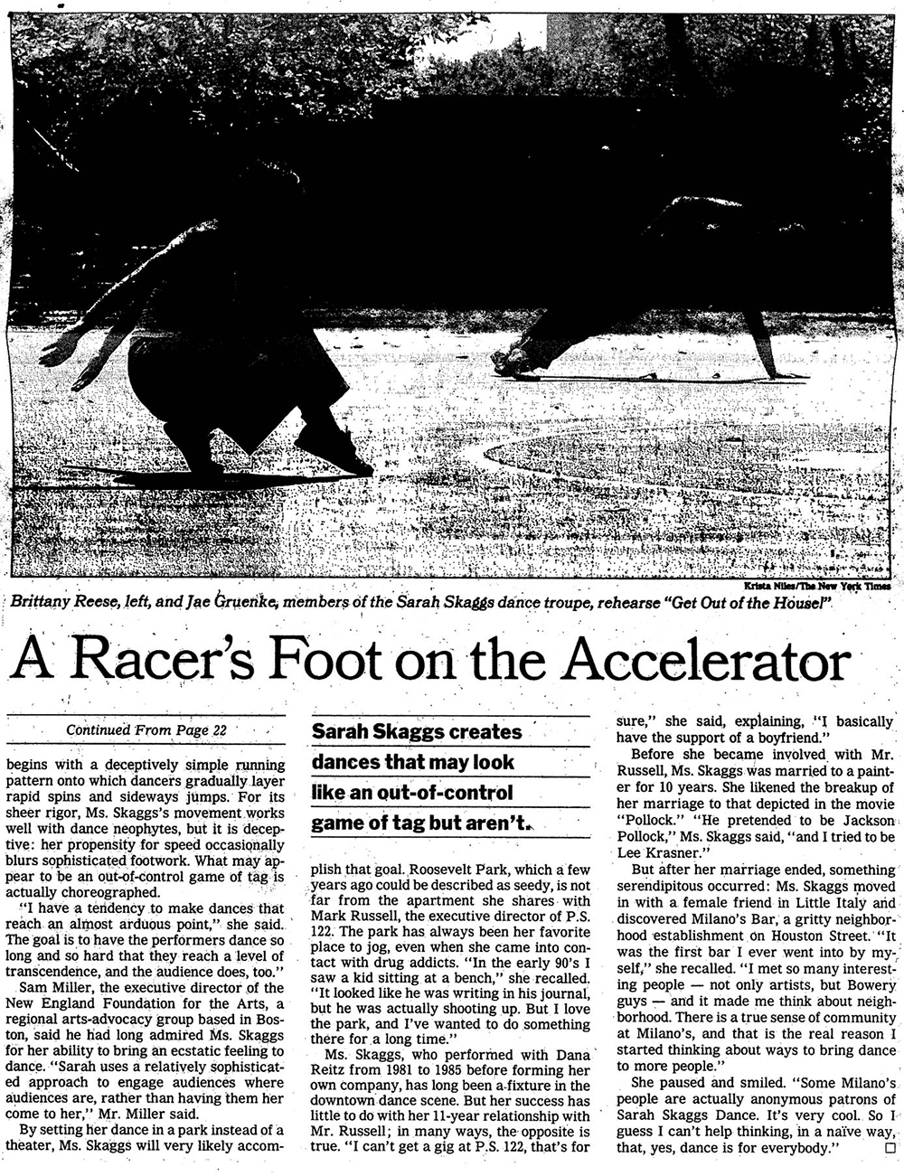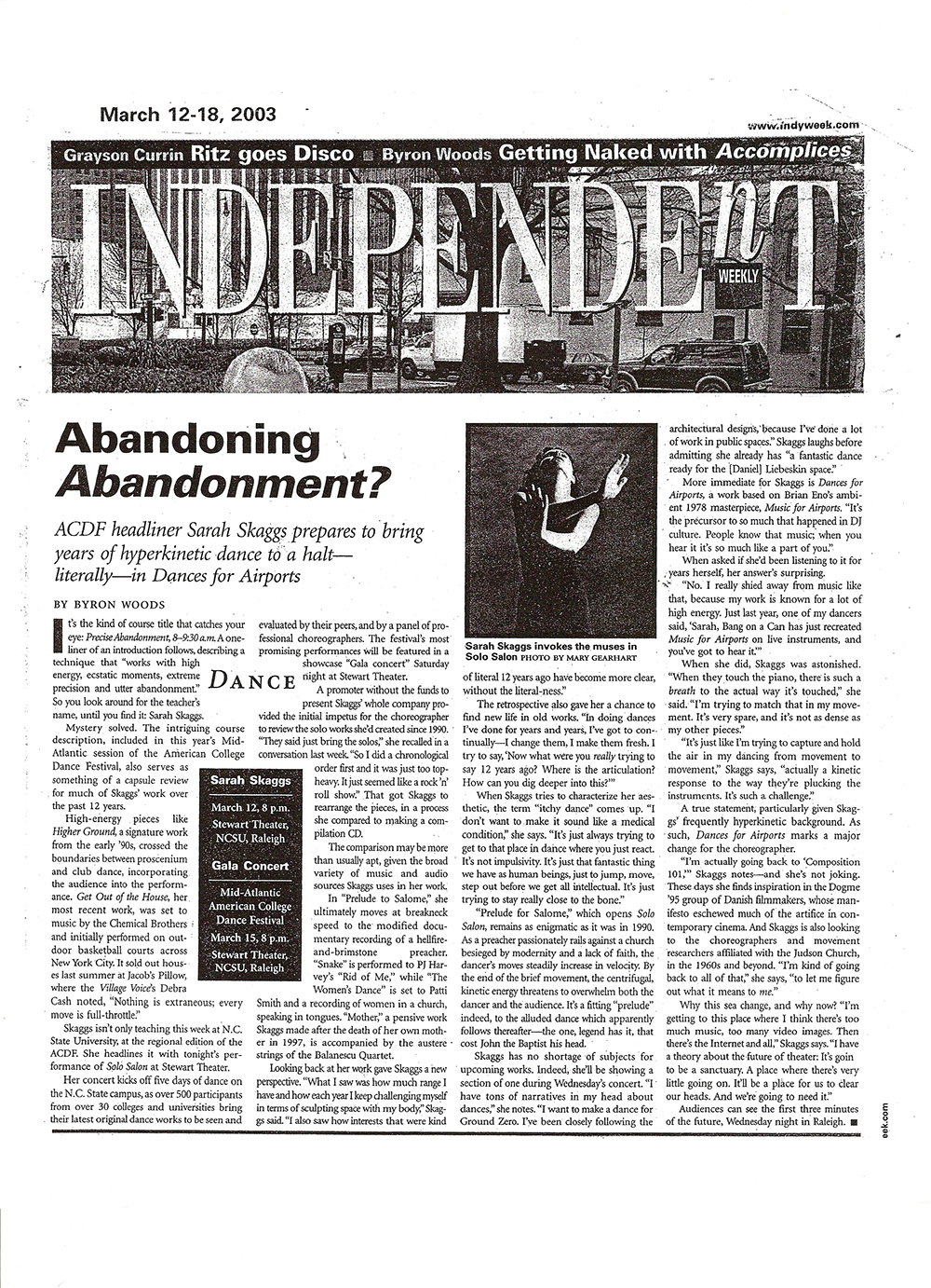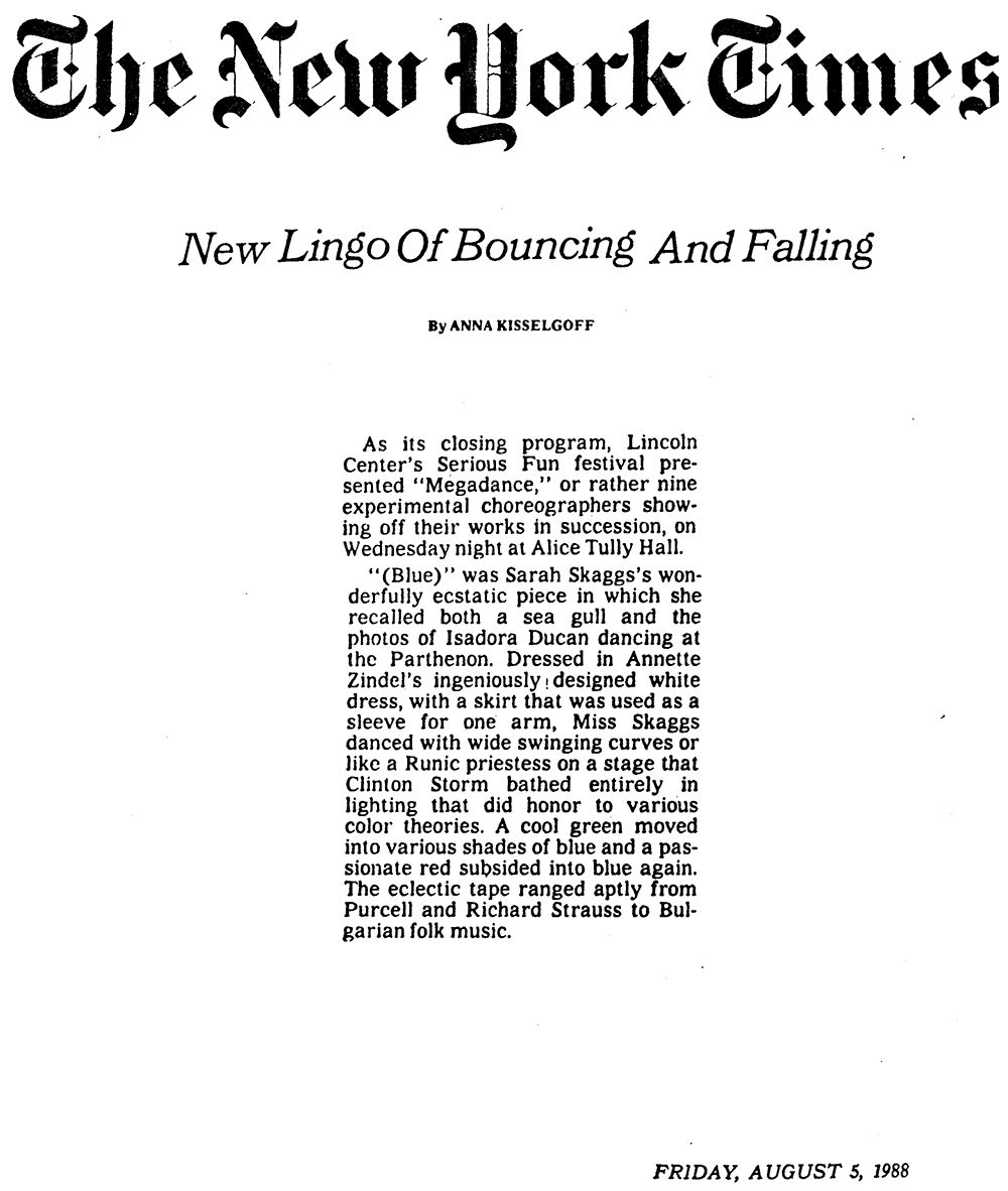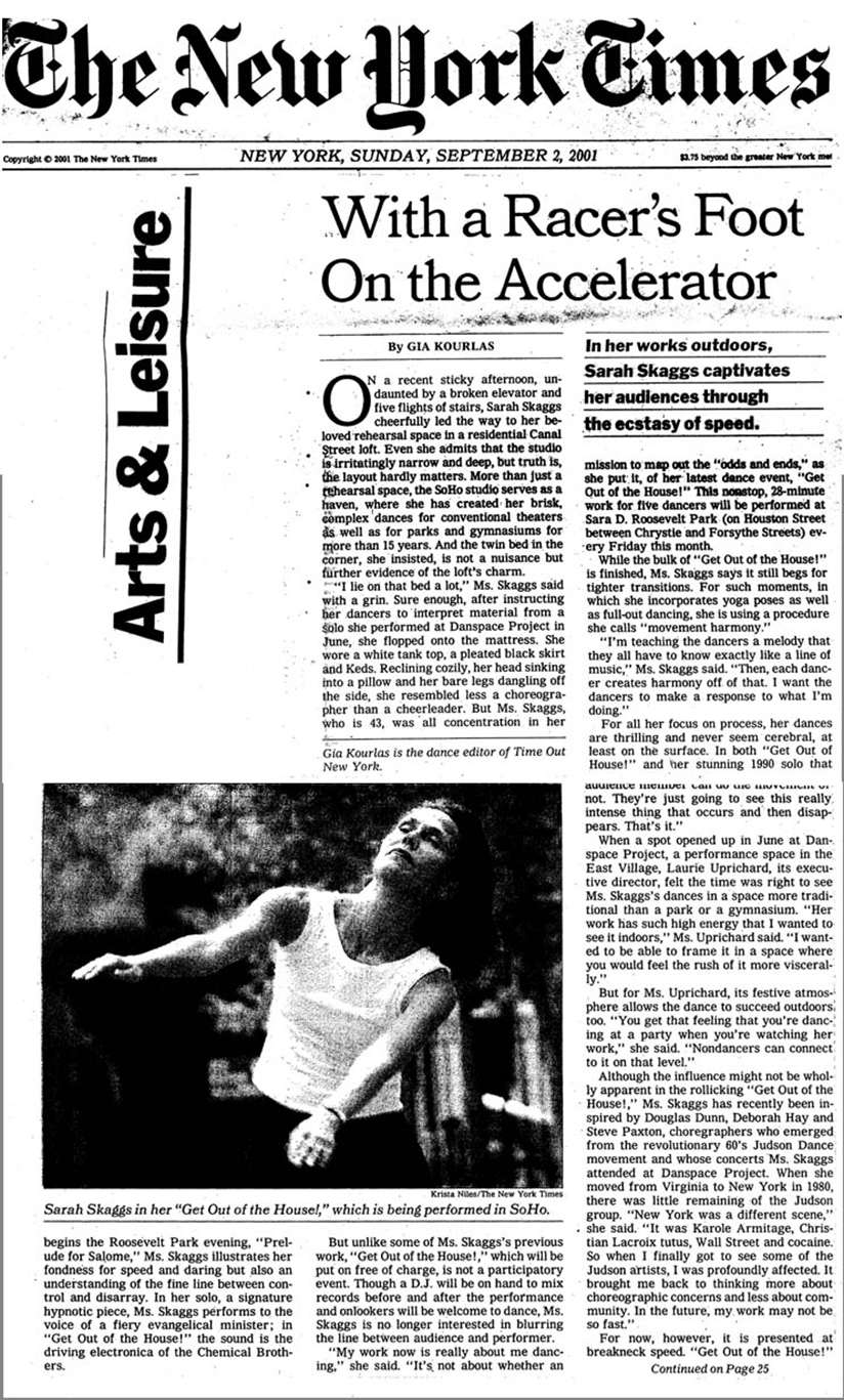 The New York Times A Transcendence Grounded in Austere Contemplation Sarah Skaggs Presents ‘The New Ecstatic’ at Danspace By Gia Kourlas Published on October 8, 2013 |